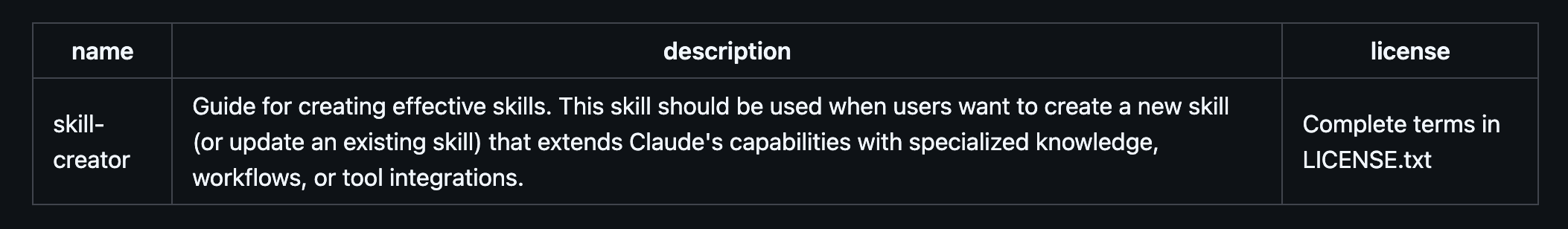 Here’s what that looks like for Skills Creator skill: